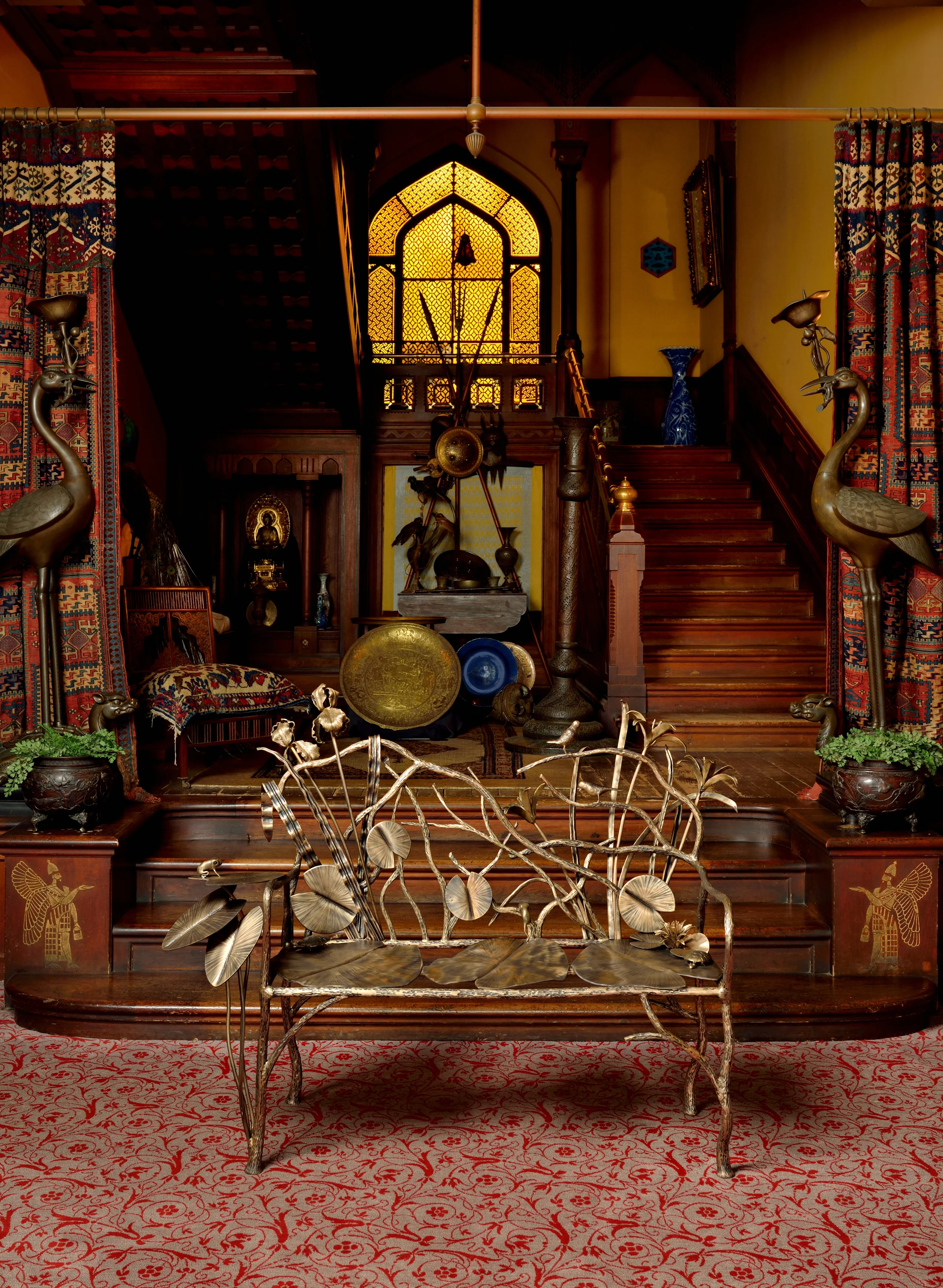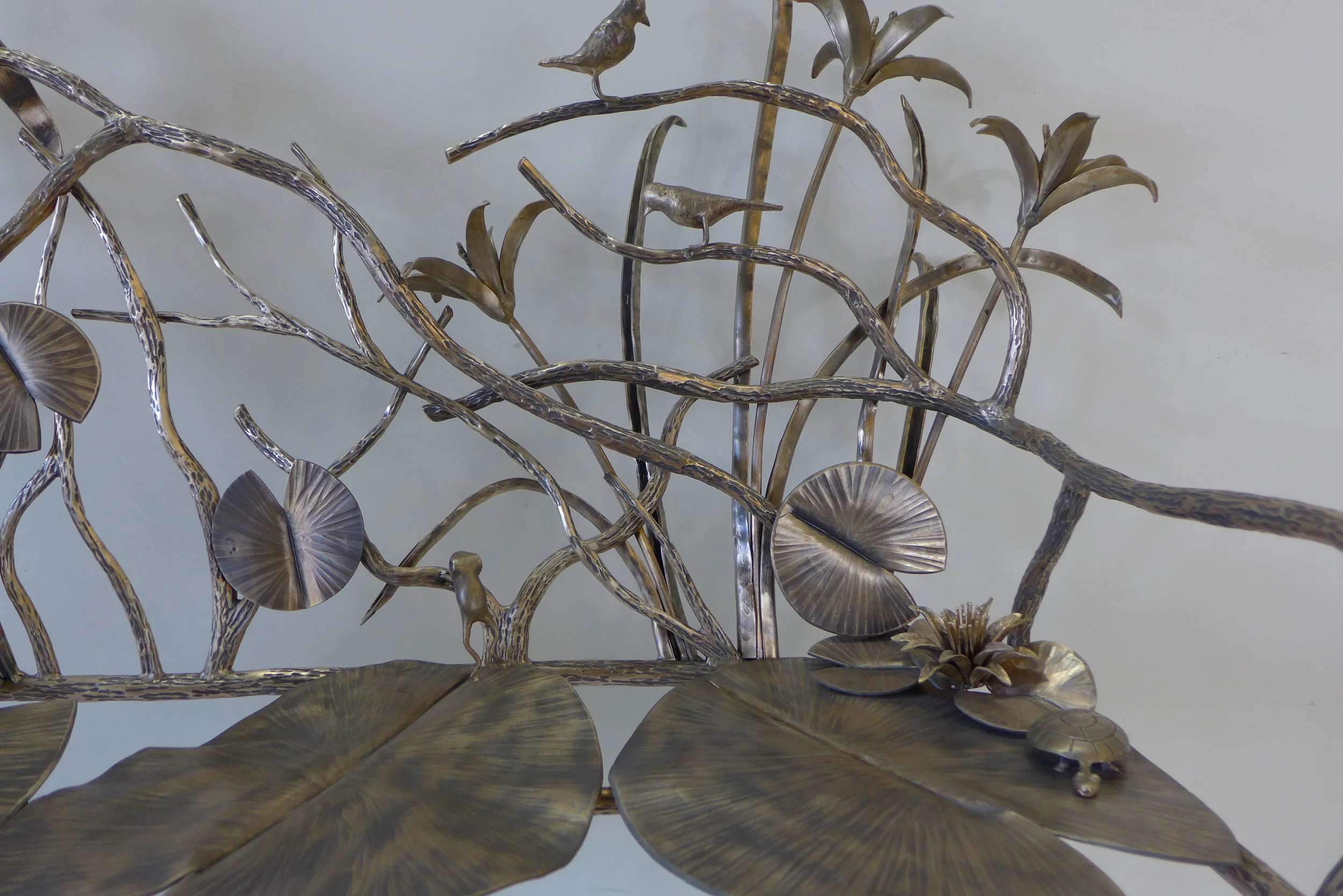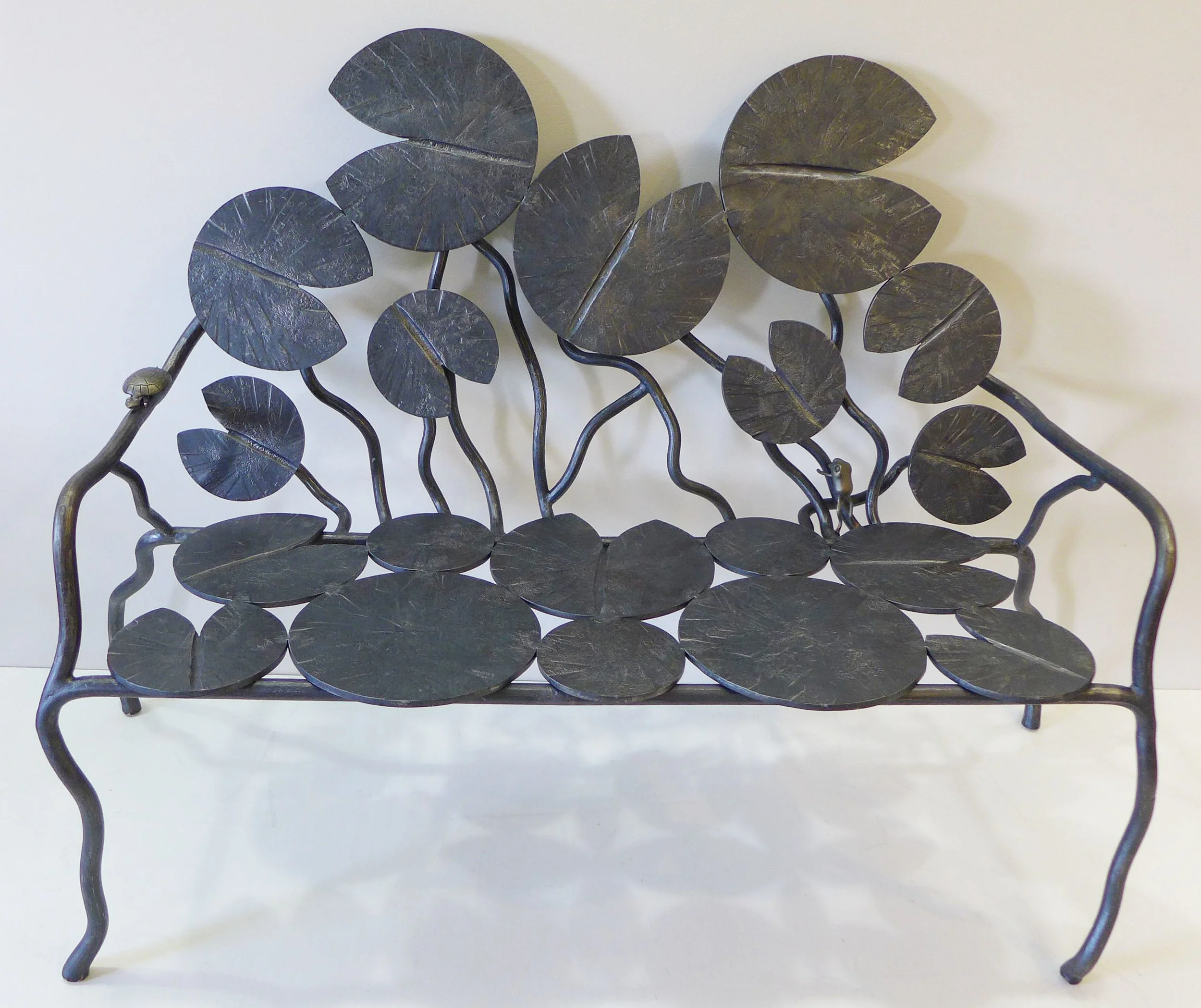 Olana, one of the top historic sites in the United States is simply an unforgettable landmark of the Hudson Valley and New York State. Opened in 1872 by American painter Frederic Church, who was a student of the Hudson River School; and studied under fellow famed American painter Thomas Cole. The association with Olana began as a way for David to become a part of the Hudson Valley community but quickly became a passion of David's. He felt compelled to contribute all that he could to this amazing landmark. Beginning first with Olana Bench No. 1 at a small charity auction for Olana. Proceeding onto Olana Bench. No 2. The purpose of the Olana benches are to accurately depict wildlife in the Hudson Valley, while also incorporating Frederic Church's distinguishable style. The shapes of the benches are very much modeled after Church's own bench designs. Olana Bench No. 2 features David's signature frogs, turtles, lilypads, birds, iris'and tiger lilly.